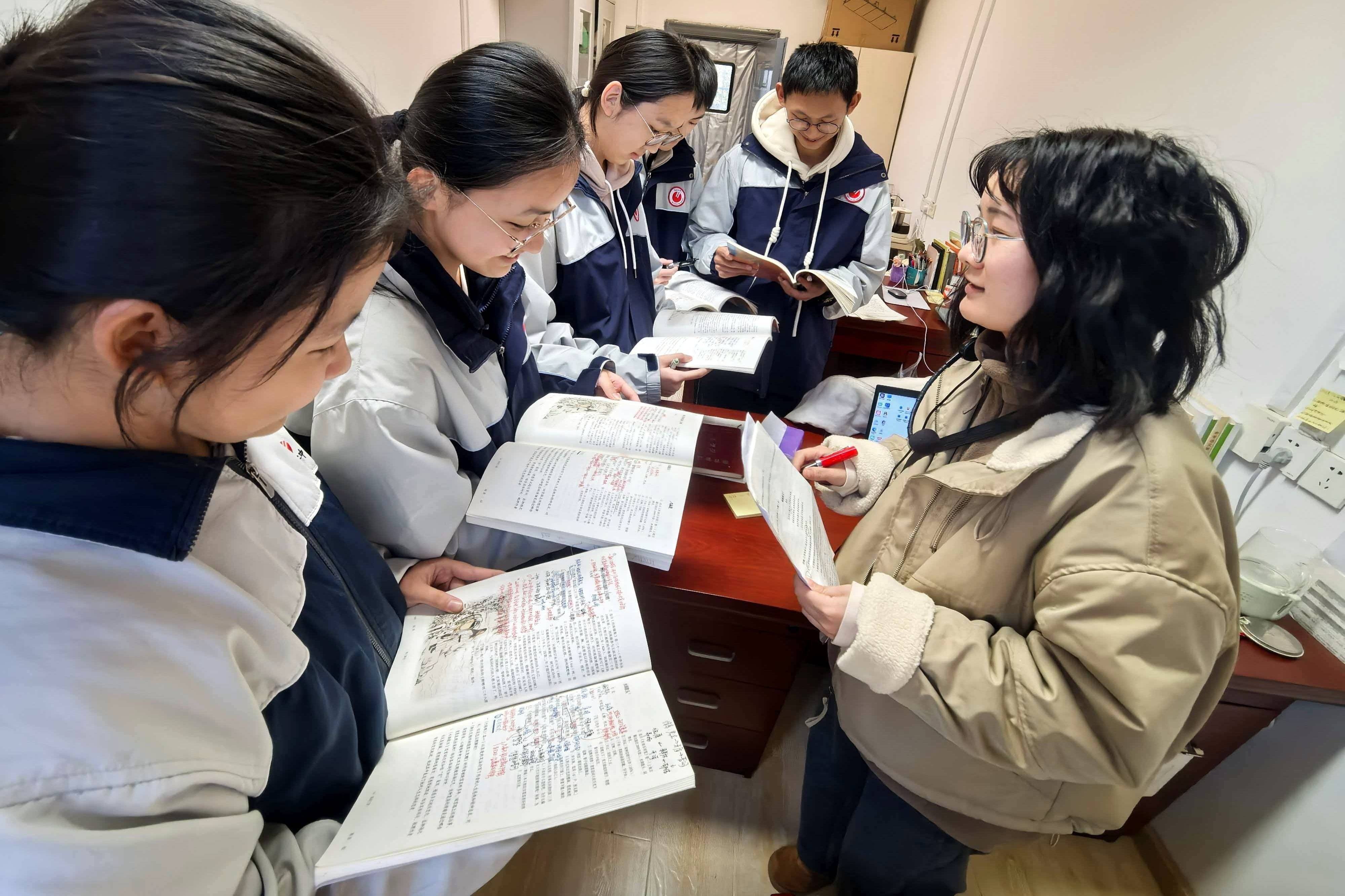 李娜是二初岱山校区七年级(8)班班主任。新学期过半,对班里学生的情况已经基本掌握。白天在学校,她观察到彭雨泽成绩中上,综合能力不错,偶尔爱开小差;到了晚上,又经常收到彭雨泽妈妈的消息,为孩子“文科”较差感到焦虑。“家长可能操之过急了些。”综合考虑后,李娜叫上英语老师朱琬莹一起,走进了彭雨泽家。“这孩子潜力很大,只是自驱力弱了点。”刚一坐下,李娜就给彭雨泽的家长吃下定心丸。她和英语老师逐一分析孩子的优缺点,指出他课堂上小动作多、作业落实不到位等“小毛病”。听说彭雨泽经常在家里刷题做阅读,李娜马上纠正彭雨泽妈妈这一要求,告诉她语文应该怎样正确辅导。