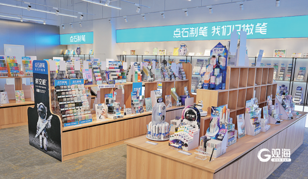 25年深耕,点石文具的自主品牌版图不断扩大。如今,公司已打造出“时空舱”“深海舱”“指间温柔”等多个知名产品系列,开发出中性笔、走珠笔、钢笔、美术类用笔等4大品类500余种型号,线下零售终端覆盖数万家,线上合作店铺达数千家,成为国内学生文具领域的头部品牌。